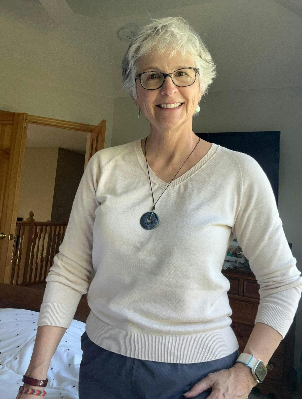 I was skeptical about wearing a sweater in warm weather. While I don’t think I could wear the seacell in mid to late hot summer weather, it was good for 60’s and possibly low 70’s if not in full sun or high humidity. It will be a good addition to my MN wardrobe because we have limited very hot weather. I loved that the sweater could be dressed up or down. I wore it for a variety of occasions and even bike rides. I was surprised how comfortable it felt every time I wore it. I wish there were more colors. OC sweaters will have a positive impact on my life because they inspire me to downsize my wardrobe and buy fewer plastic fibers in the future. Anyone who cares about our planet and wants to start a capsule wardrobe should buy OC sweaters.